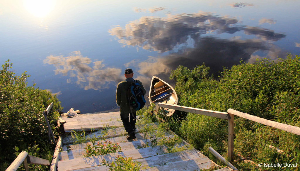 Suit un excellent souper fait de pétoncles et de riz : succulent! Les repas dont on se souvient le plus se prennent souvent en pleine nature, après de grands efforts. Il faut parfois beaucoup de travail — associé à une foi véritable en la voie tracée pour soi et par soi — pour arriver à certains instants primordiaux, tel celui que nous vivons, alors que tout prend son sens. L’extrême sens sacré du lieu et des êtres qui y passent, y campent, depuis toujours, se magnifie. Instant de recueillement tranquille, en cette soirée de fin du mois d’août, aux abords de la Témiscamie, au sommet de la Colline blanche, non loin de la chaîne des monts Otish. Il faut la plupart du temps beaucoup de sueur et d’entraide, en plus d’une réelle dose d’humanité et d’une véritable intelligence — en concordance avec les forces de la nature —, pour que surgissent de tels moments d’harmonie entre les êtres et le monde. Il faut savoir tenir compte du vent et des nuages qui menacent, du courant et des eaux tumultueuses, de tout ce qui peut être utile comme matériel et comme nourriture pour la survie. Il faut apprendre à lire les sentiers, les falaises, les caps et les passes parfois dangereuses. Vivre une expédition en forêt boréale n’est jamais facile. Il y a plusieurs marches forcées, et l’équipement à transporter, et des intempéries et des moustiques, ces maîtres de la Boréalie depuis des centaines de millions d’années. Mais quand enfin on parvient au lieu auquel on rêvait, et qu’on peut s’y recueillir en remerciant le monde, eh bien, c’est là qu’une « route sacrée » finit par prendre tout son sens. Rien n’est alors insensé, même les courbatures ou les élancements dans les bras, même la boue entrée dans les souliers. Chaque détail prend une signification d’autant plus grande qu’il participe à l’envol de paroles plus solennelles que celles de la vie dite « normale » — paroles à la fois plus intimes et plus universelles. Nous nous sentons en communion avec le monde.